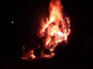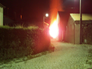 O tamanho da fogueira era deveras impressionante... o calor intenso ,emanado pelas chamas da sua lenha, obrigava os convivas a afastarem-se uns largos metros dela.