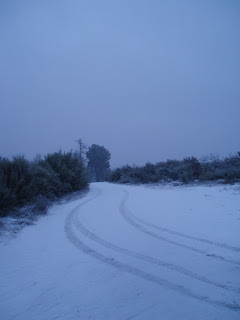 Antes de nevar, uma camada de granizo foi derramada dos céus, salpicando de branco a paisagem da qual só os caminhos de terra gelada não absorveram, criando a ilusão de que São Pedro teria escolhido apenas os caminhos como tela para a sua obra de arte imaculada.