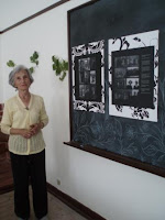 A autora junto a fotografias muito antigas que datam do início do século passado, retratando a família e populares conhecidos da terra.